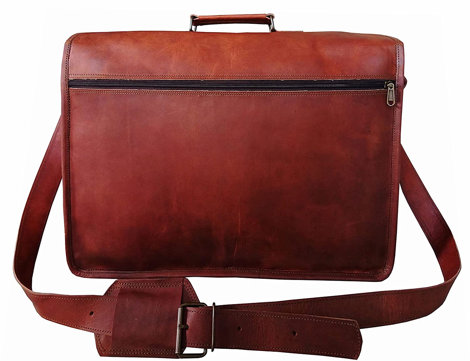 18 Inch Vintage Handmade Leather Travel Messenger Office Crossbody Bag Laptop Briefcase Computer College Satchel Bag For Men And Women