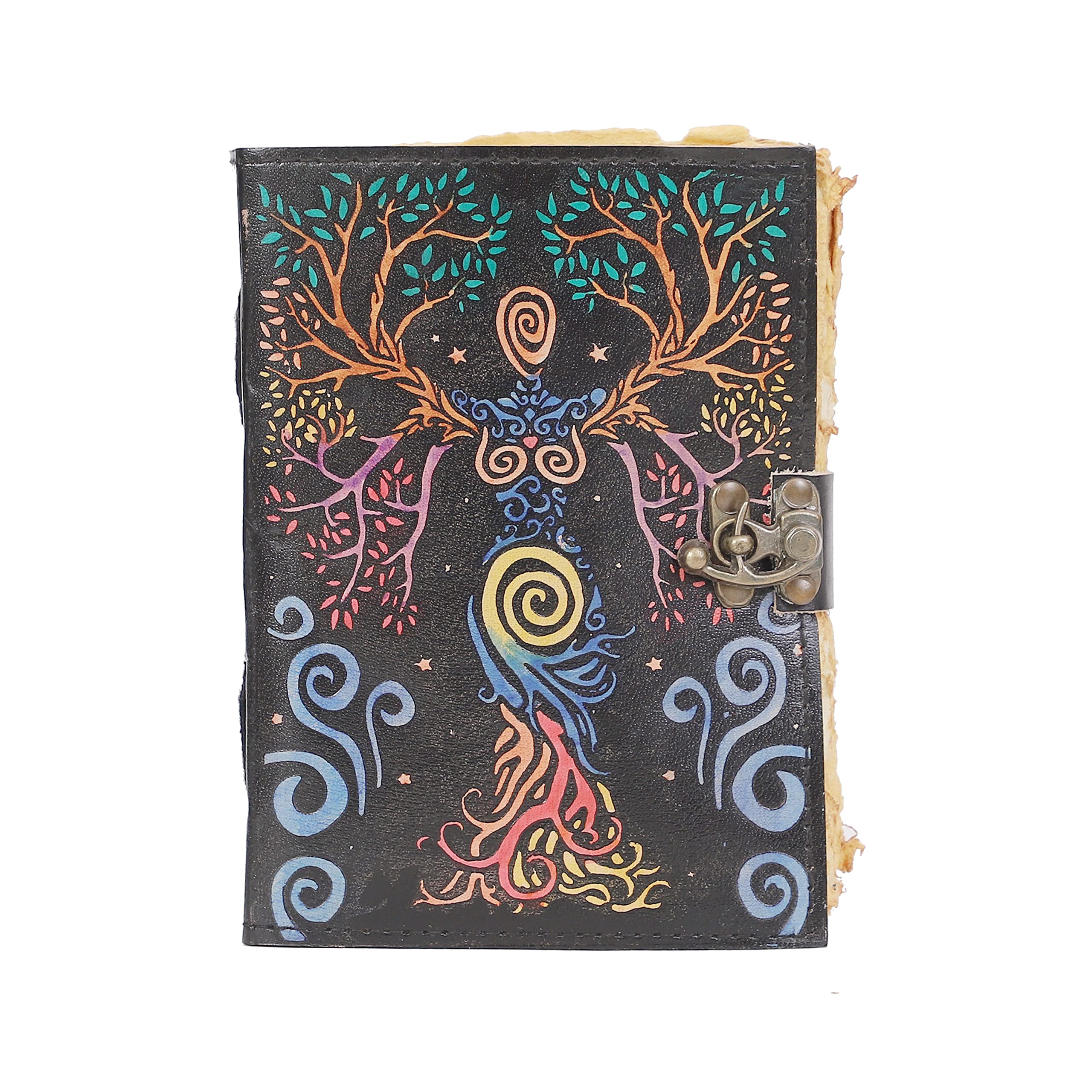 - Handmade deckle edge paper mother of earth leather journal writing notebook tree of life antique embossed bound daily notepad unlined paper cover with colorful print journal for women 7x5 inch
